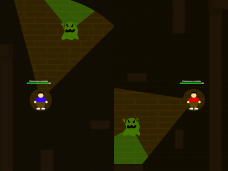 Dans ce projet, j'ai travaillé sur l'effet de lampe de poche et du rayon de détection des ennemis, sur le système d'ouverture de portes, du changement de niveau, des conditions de victoire et de défaite et sur le déplacement des personnages.
